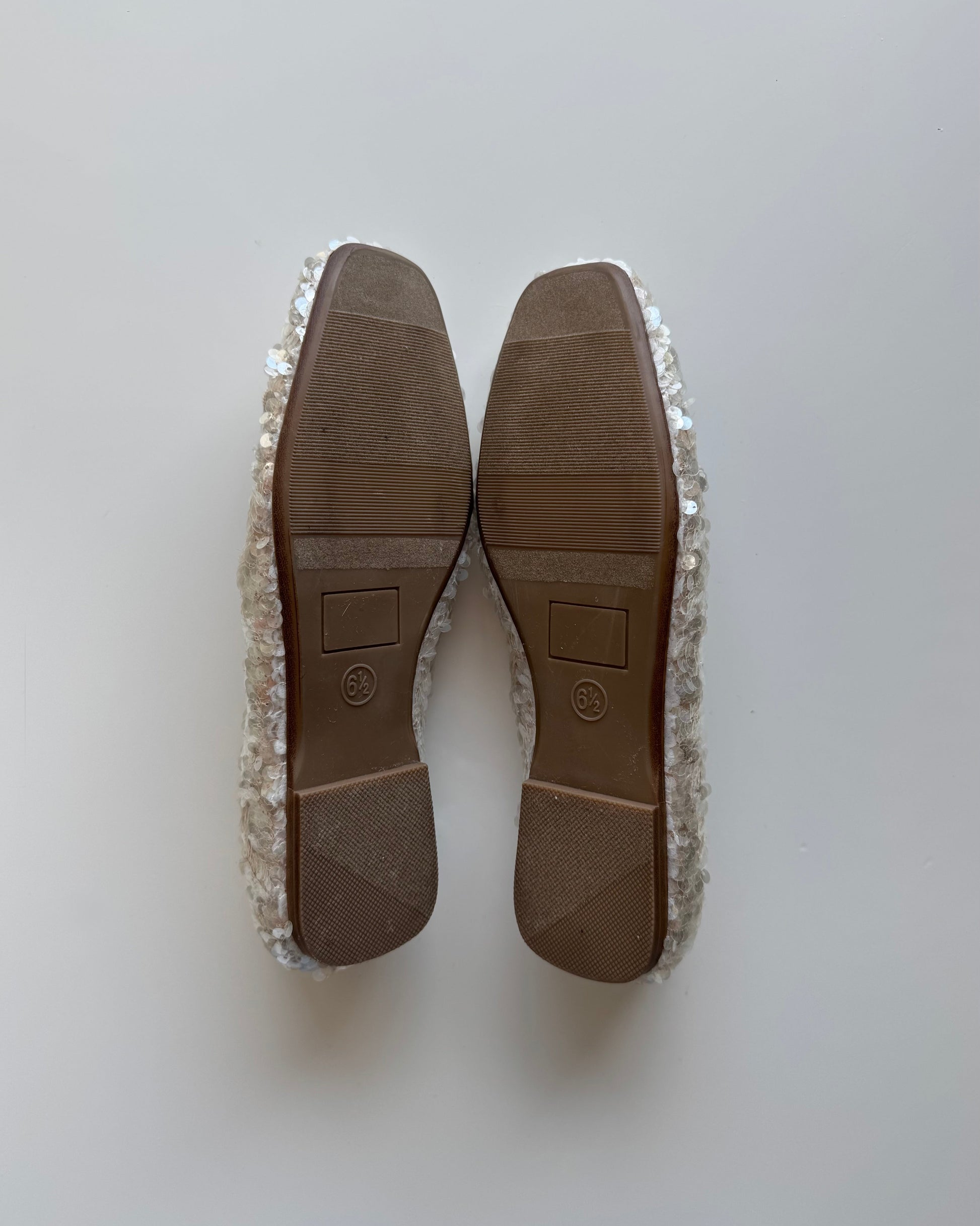 Vintage Scoop sequin ballet flats with a square toe box. Marked size 6.5, best suited for 6.5