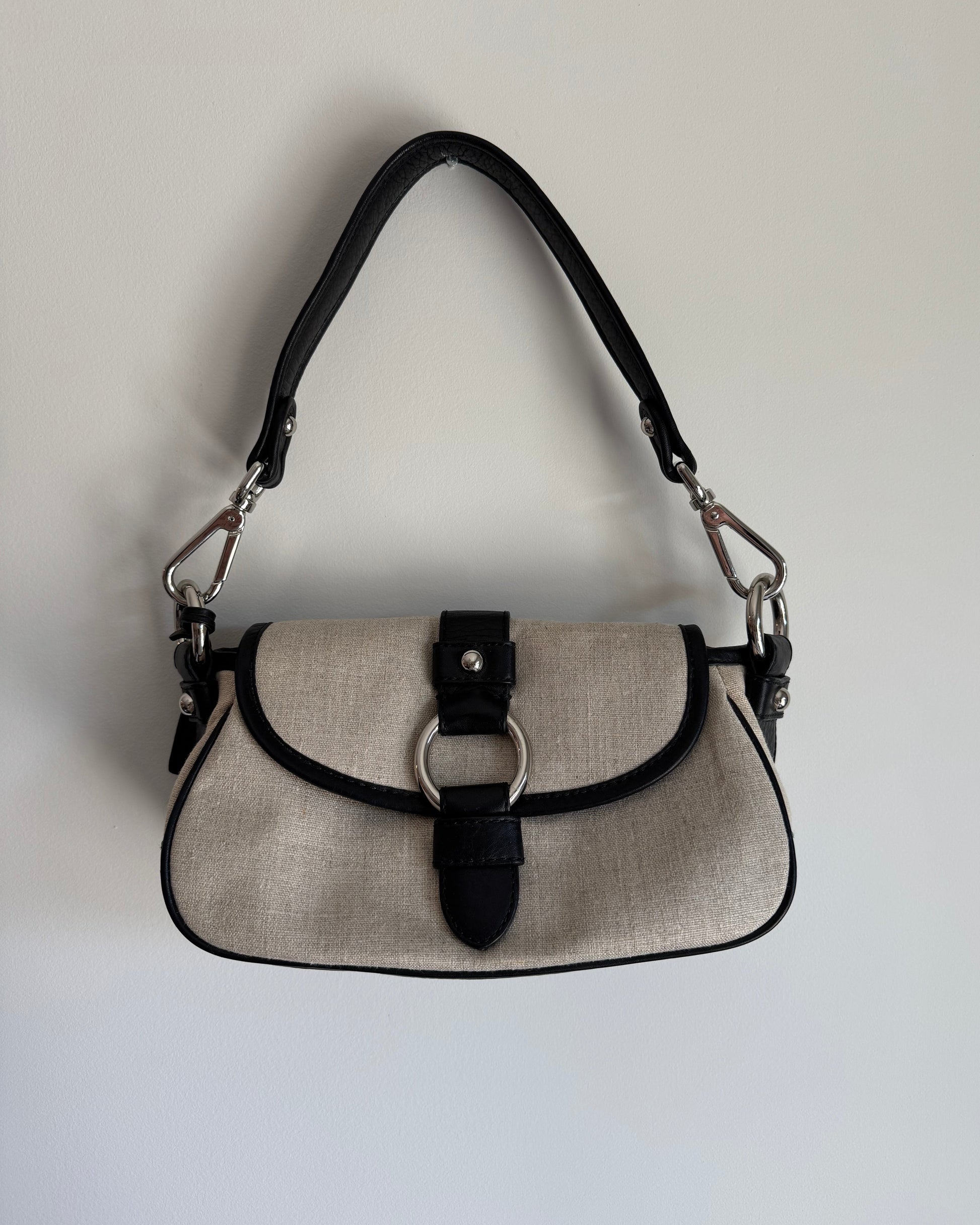 Vintage Banana Republic canvas shoulder bag. Leather & silver accents. Good pre-owned condition. Clean interior.