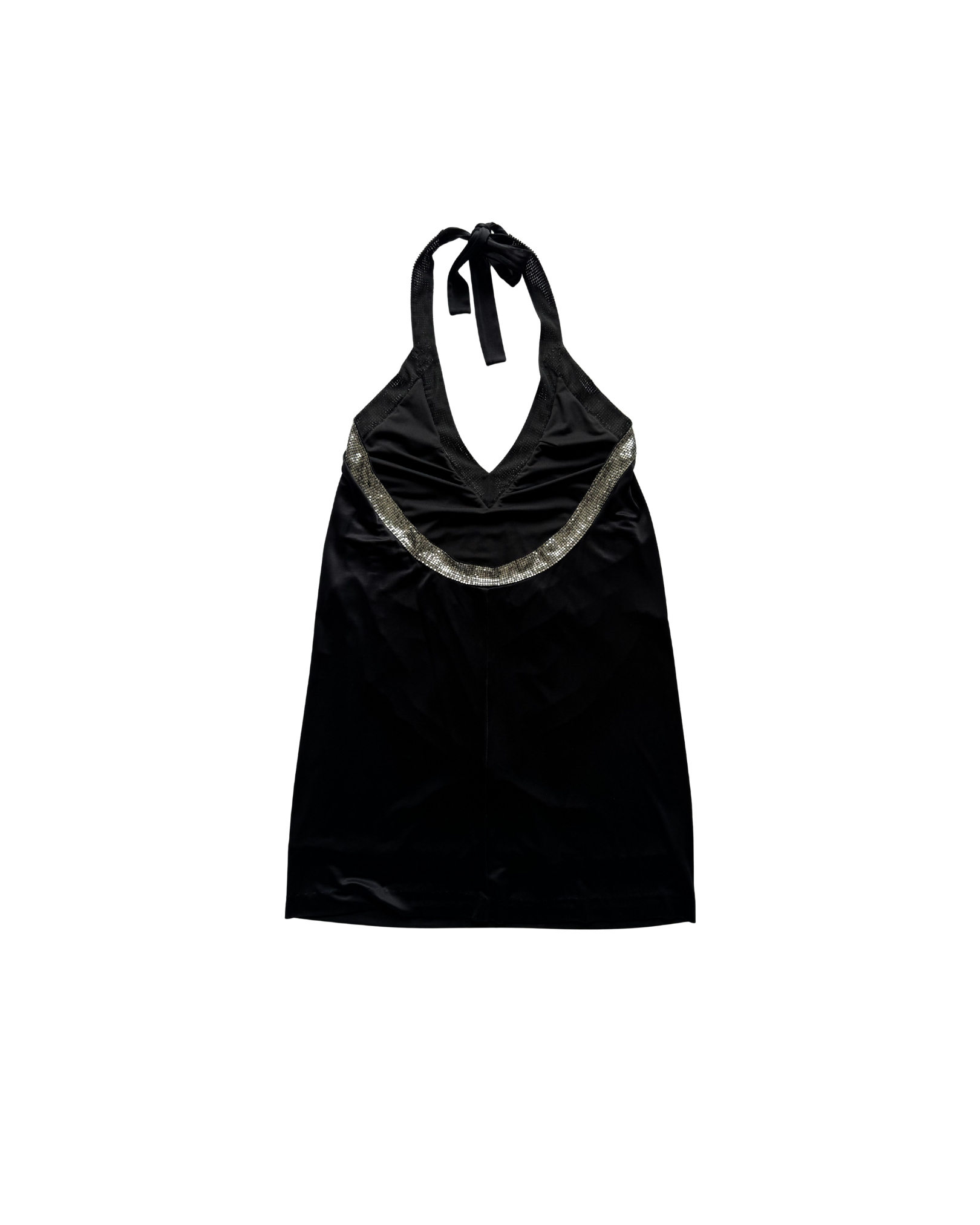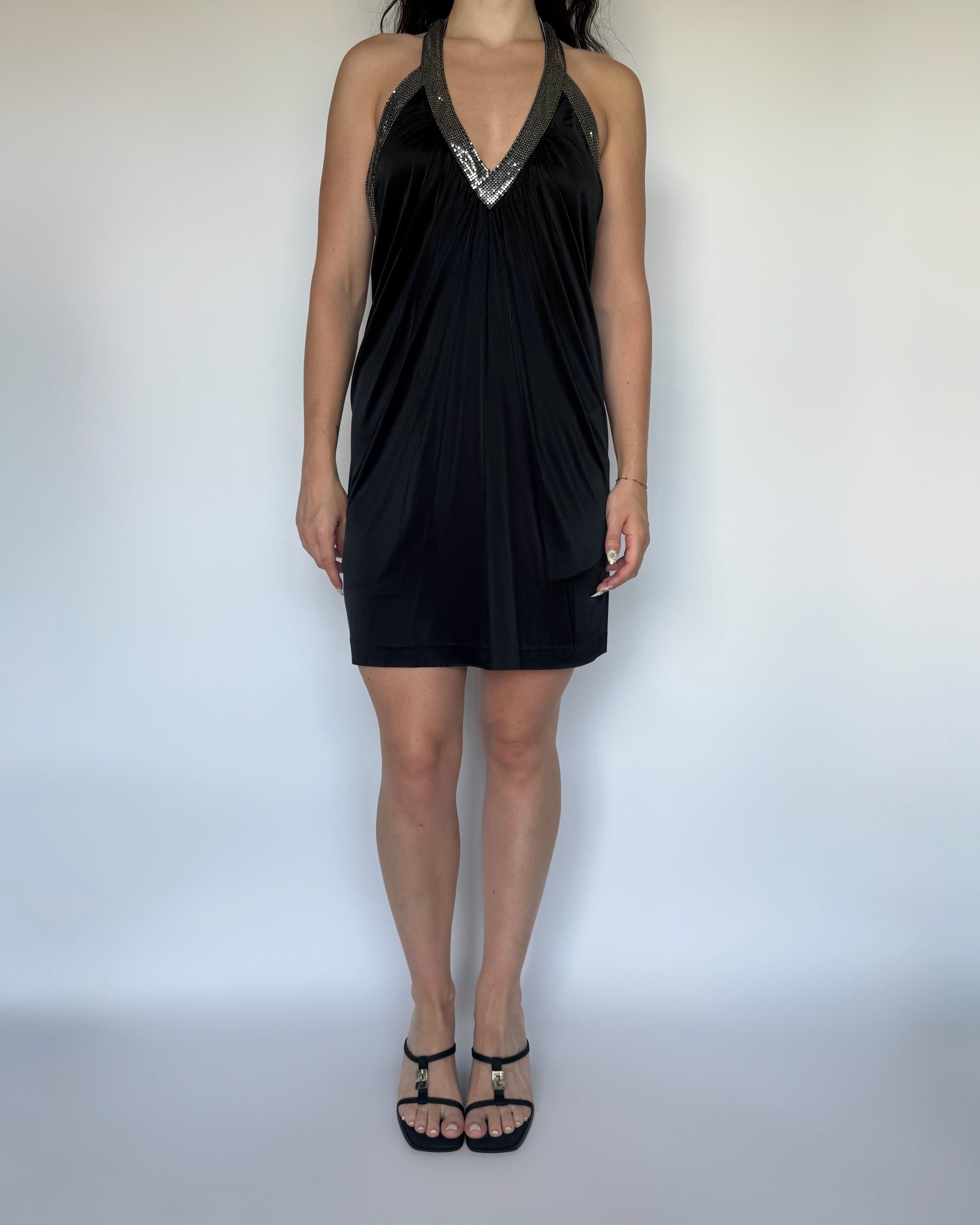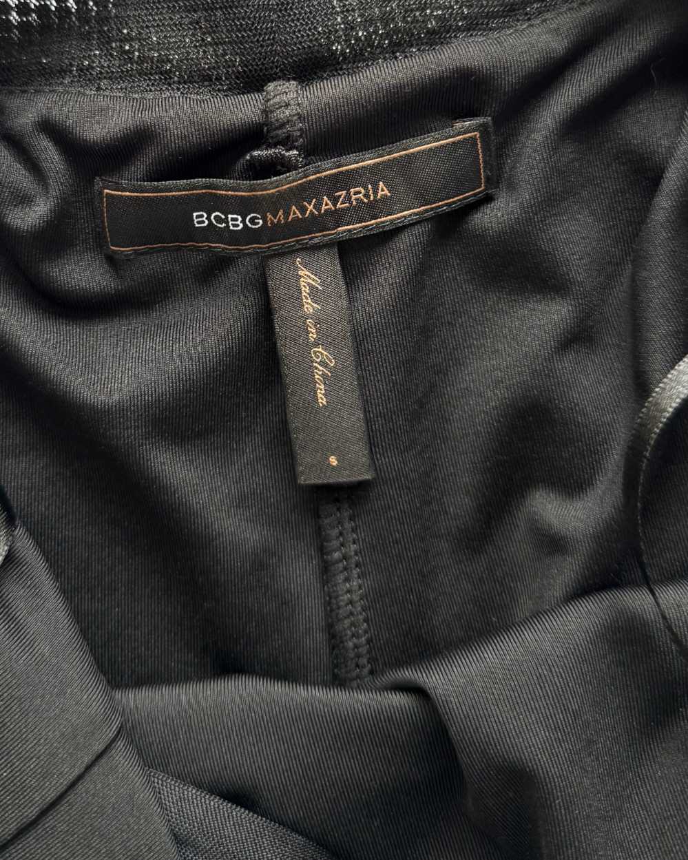 Tricia is wearing a BCBG Maxaria halter dress. Marked size S, best suited for size S.