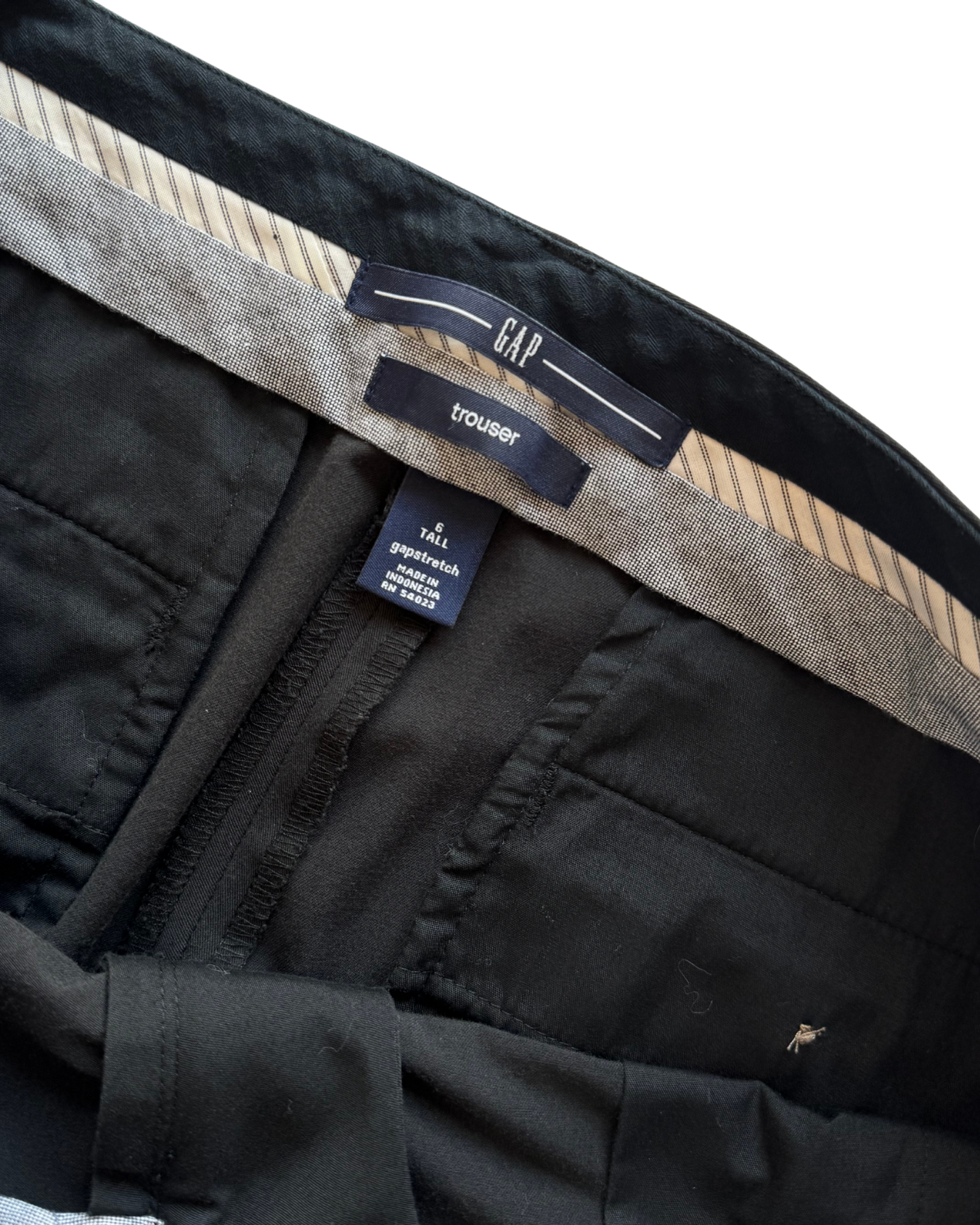 Adelyn is wearing a pair of black GAP baggy trousers. Marked size 6 tall, best suited for S/tall.